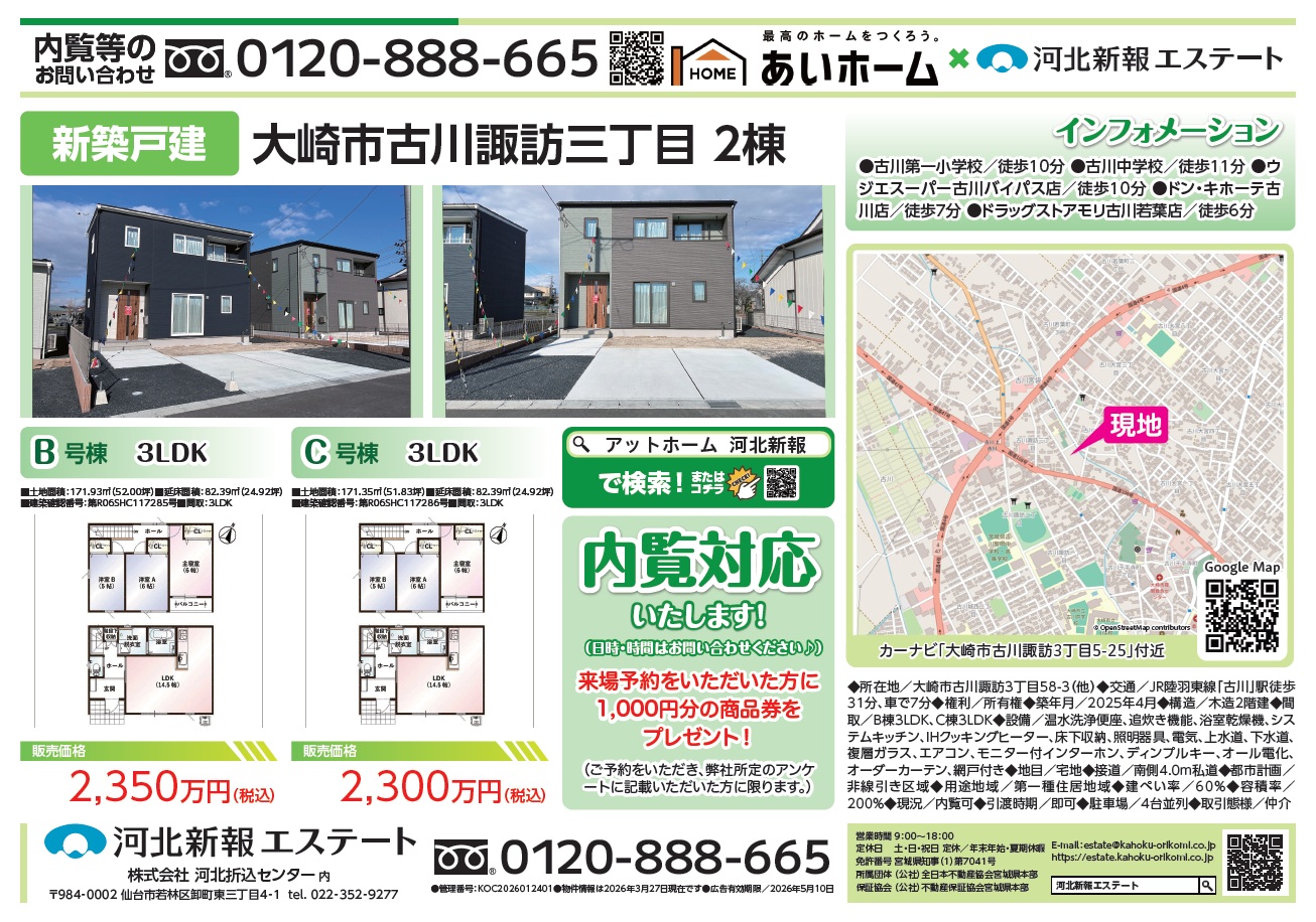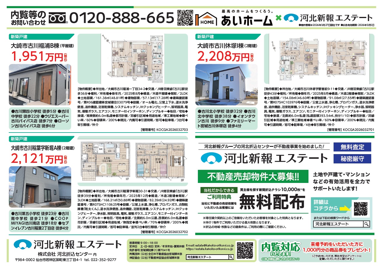 【新築戸建】大崎市古川 3物件